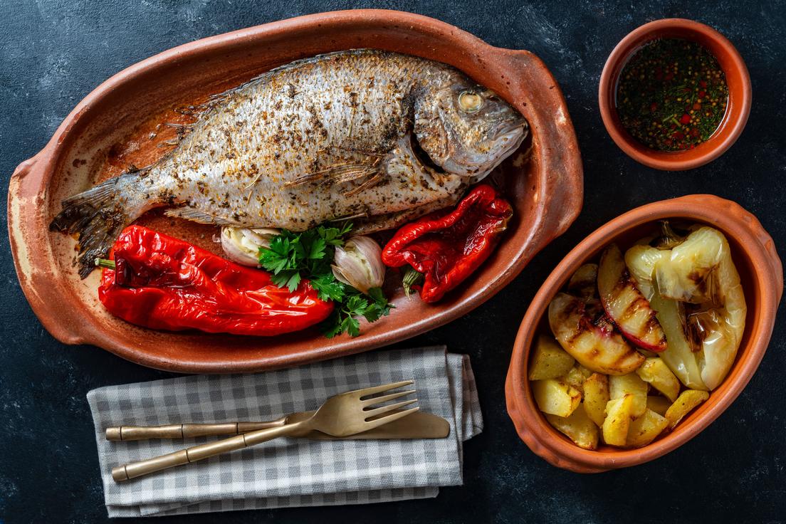 La dieta mediterránea se basa en alimentos de origen vegetal, como el aceite de oliva, legumbres, frutos secos, semillas, cereales integrales y frutas de temporada, con un consumo limitado de lácteos y carne roja, y con el pescado como la principal fuente de proteína animal. De ahí también nace la variante pesco-mediterránea, que enfatiza los beneficios del pescado blanco y azul, ricos en proteínas, vitaminas y minerales, vinculados a una mejor salud cardiovascular y mayor longevidad.