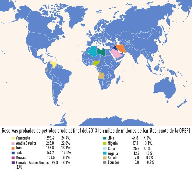 A los cinco pasíses fundadores de la OPEP(Venezuela, Arabia Saudita, Irán, Irak y Kuwait) posteriormente se sumaron otros miembros.