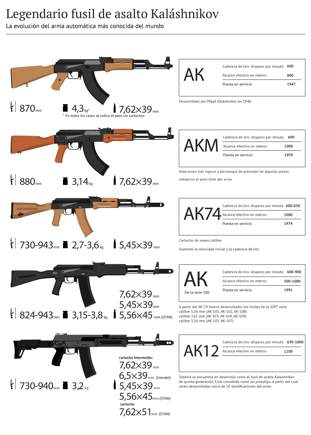 Precisamente, para este cartucho diseñó su famosa arma el entonces humilde técnico, el sargento Mijaíl Kaláshnikov.