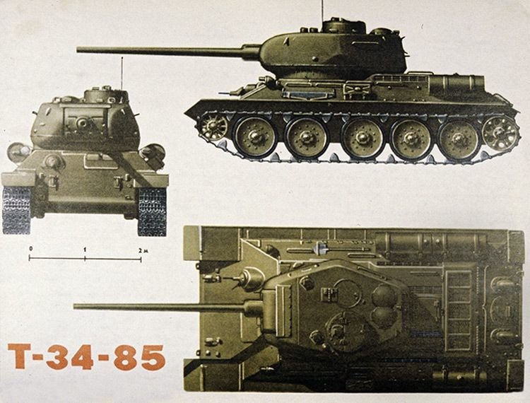 Versión más avanzada del T-34, dotada de un canón largo de 85 mm., torreta y chasis modificados y otras mejoras de diseño. En 1943, a raíz del uso masivo de los nuevos tipos de tanques alemanes Tigre y Pantera —de blindaje muy grueso—, la eficacia del cañón F-34 de 76 mm. resultó ser insuficiente contra esos monstruos.