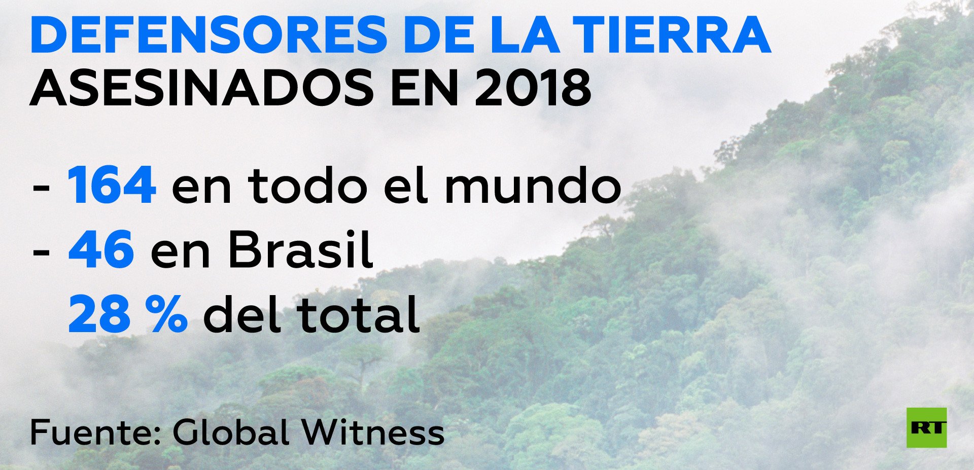Brasil es el país del mundo con mayor número de asesinatos por conflictos rurales y se constituyó como el primer país en número de asesinatos a ambientalistas, de acuerdo con los datos más recientes de la organización Global Witness (GW). De los 164 defensores de la tierra asesinados el pasado año en todo el mundo, 46 estaban en Brasil, es decir el 28 % del total.