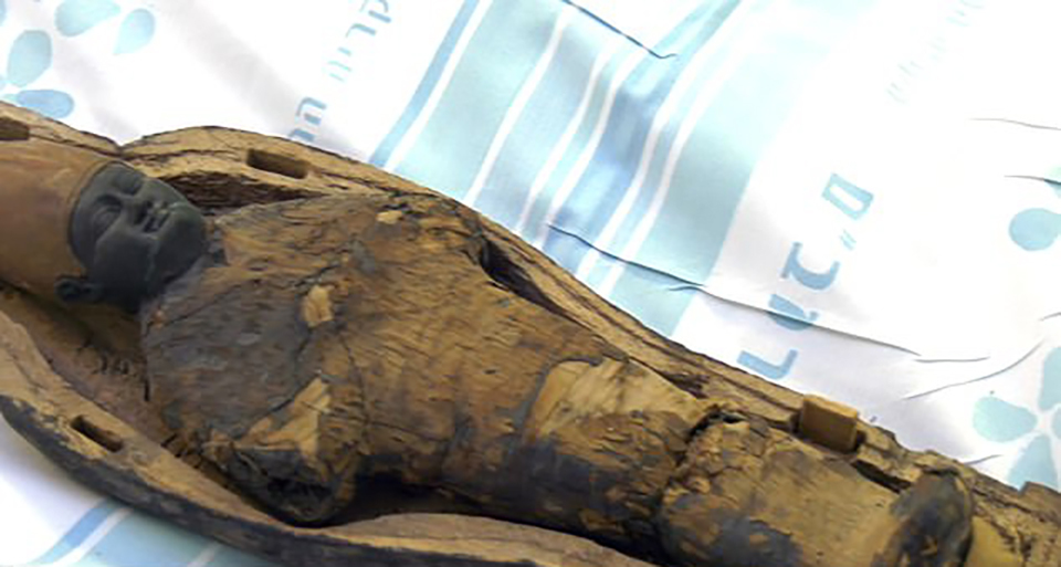 Especialistas de un hospital israelí descubrieron que una momia conservada en el Museo Nacional Marítimo de Haifa era en realidad una figura artificial hecha de barro y grano. El hallazgo fue posible tras someter a la supuesta momia a una tomografía computerizada.