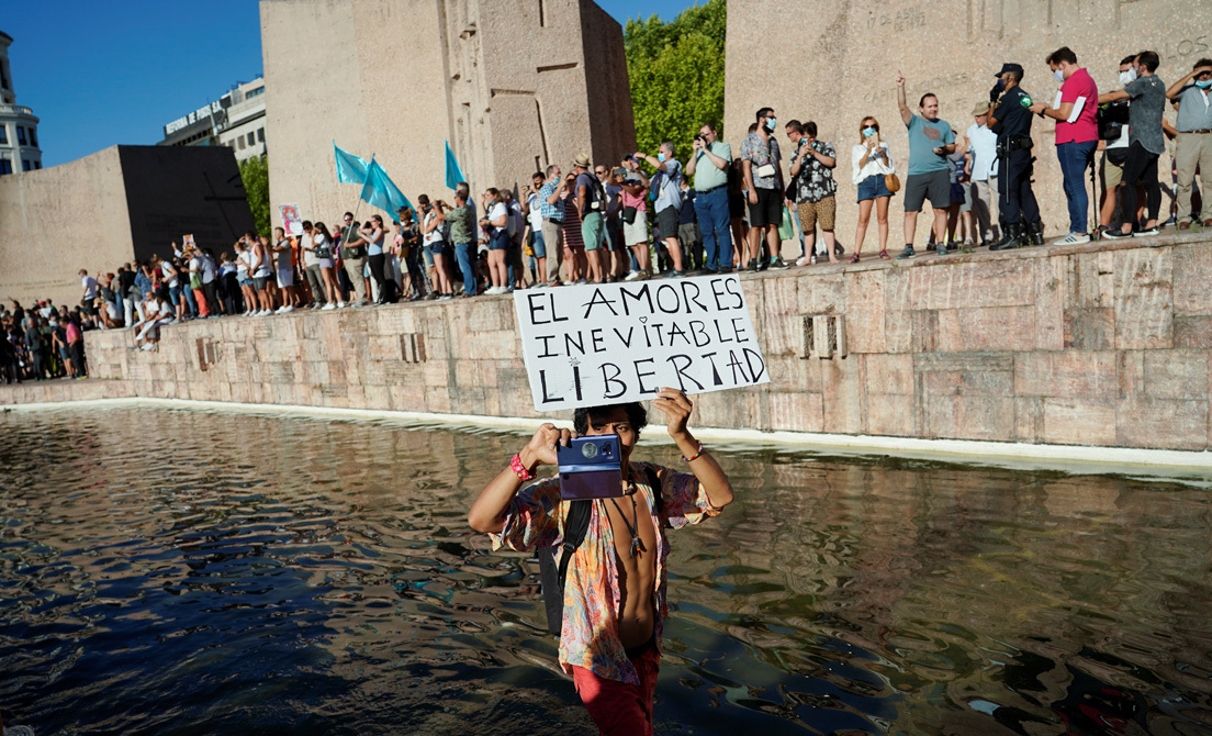 - El 16 de agosto llegó la gran manifestación de los negacionistas, que llenaron la plaza de Colón, con muchos de los asistentes sin mascarillas y todos ellos sin respetar la distancia de seguridad.