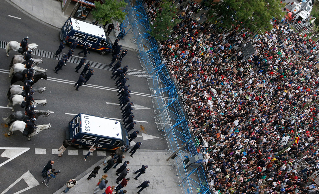 El 25 de septiembre de 2012 miles de personas se concentraron en los alrededores del Congreso de los Diputados. Habían sido convocados por la Coordinadora 25S, una de las múltiples organizaciones nacidas al calor del 15M, un movimiento sin cabeza visible que reunió a los descontentos en todas las plazas del país. En esta ocasión se denunciaban los recortes aprobados por el Gobierno conservador de Mariano Rajoy.