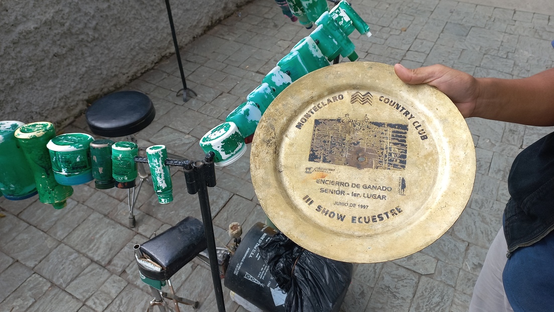Quien camine distraídamente por el centro histórico la tarde de un sábado escuchará el sonido proveniente de una batería. Al buscar con la mirada verá una particular estructura rectangular donde sobresalen recipientes de plástico de color verde.