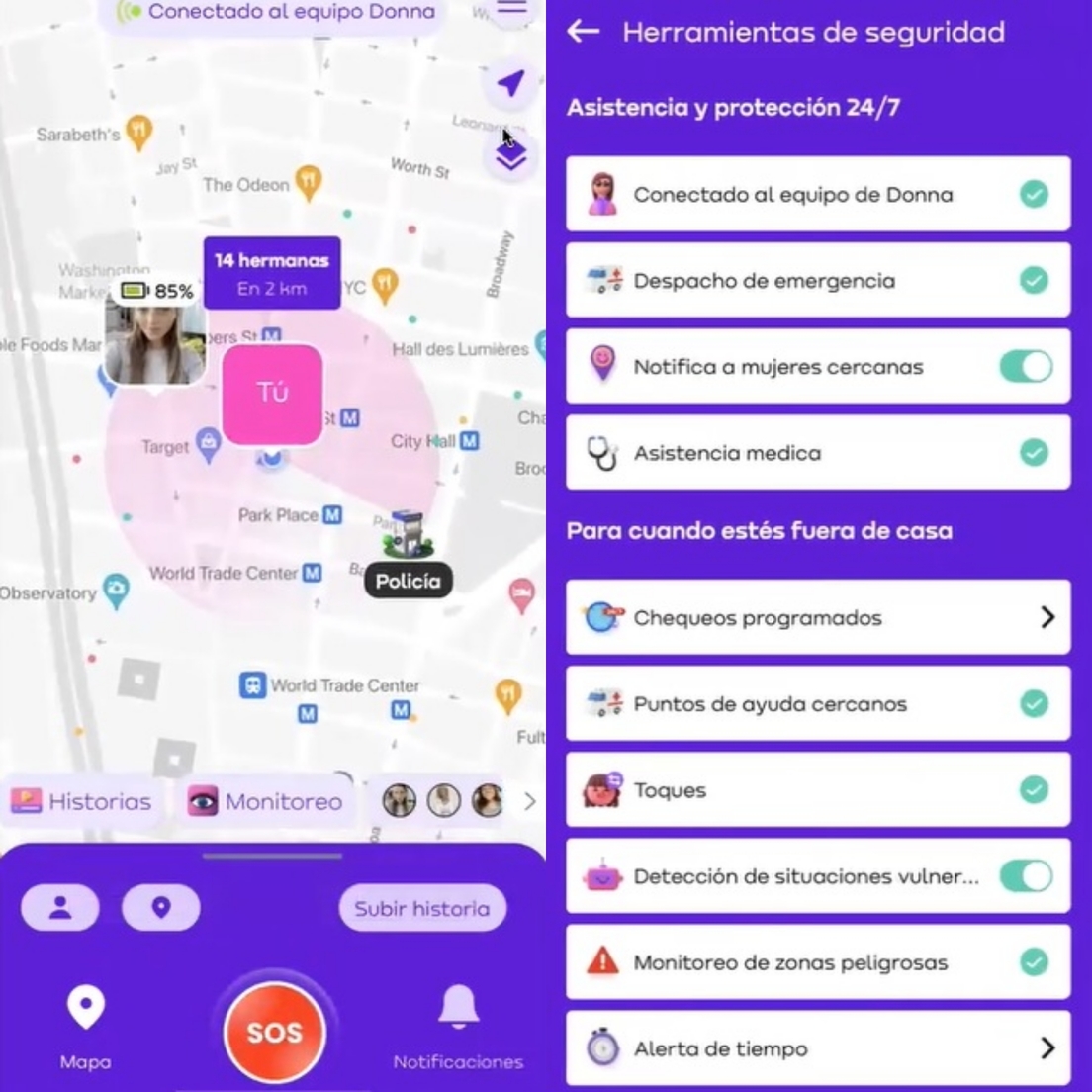 Donna también detecta momentos de posible riesgo, como cuando una mujer llega más tarde a su casa. En este caso, el sistema envía una notificación para preguntar a la usuaria si se encuentra bien. En caso de no tener respuesta, una agente llama por teléfono para verificar que esté a salvo.