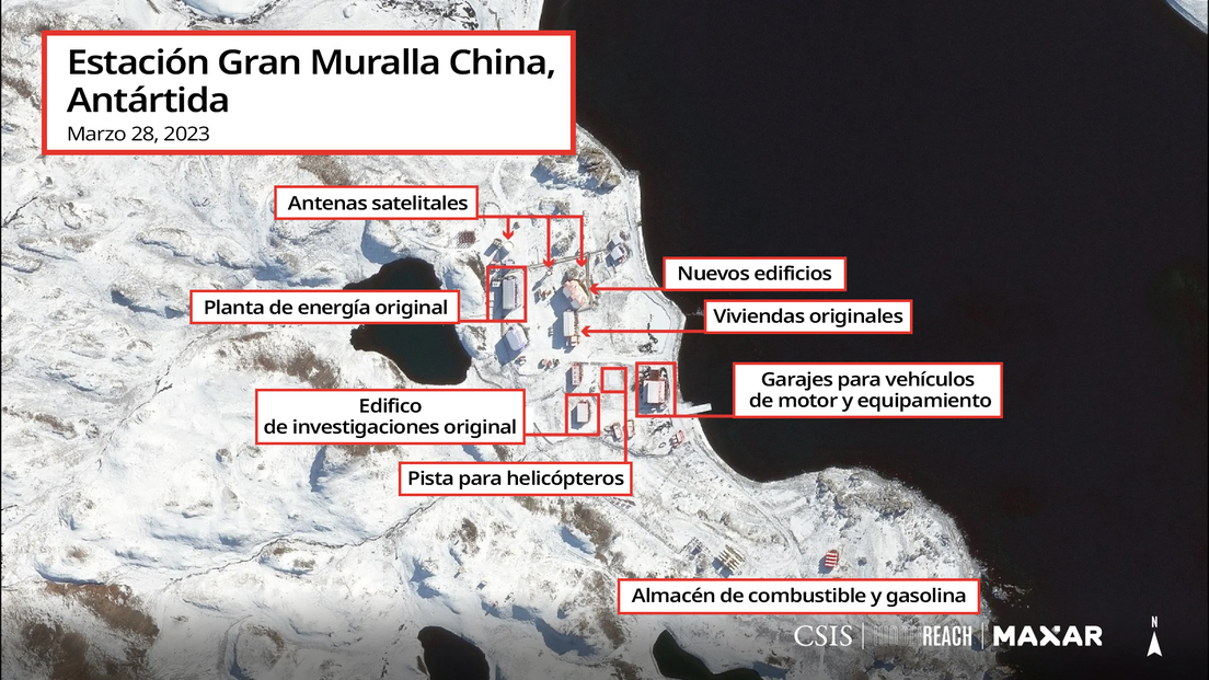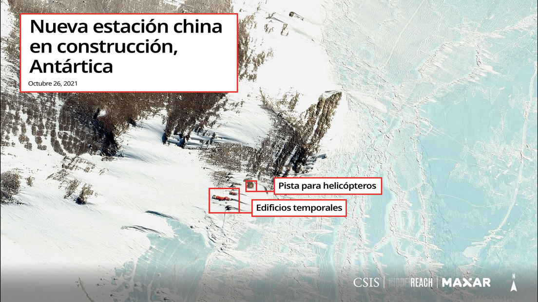 El análisis de las imágenes satelitales tomadas en enero reveló a CSIS los avances constructivos en la nueva estación, ubicada en la isla Inexpresable, Antártida. Según su informe, se han construido nuevas instalaciones de apoyo, edificios temporales y hasta una pista para helicópteros. Se estima que la base podría estar lista para 2024 y debería de incluir un observatorio con una estación terrestre satelital y un muelle para los barcos rompehielos de China.