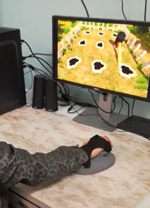 Otro juego se llama 'Topocrisis' y el objetivo es que el paciente le pegue a los topos antes que desaparezcan los mamíferos, para lo cual debe utilizar el 'mouse', al que se le ajusta la sensibilidad de acuerdo con el movimiento que debe realizar, ya sea con el brazo, el codo o la muñeca.