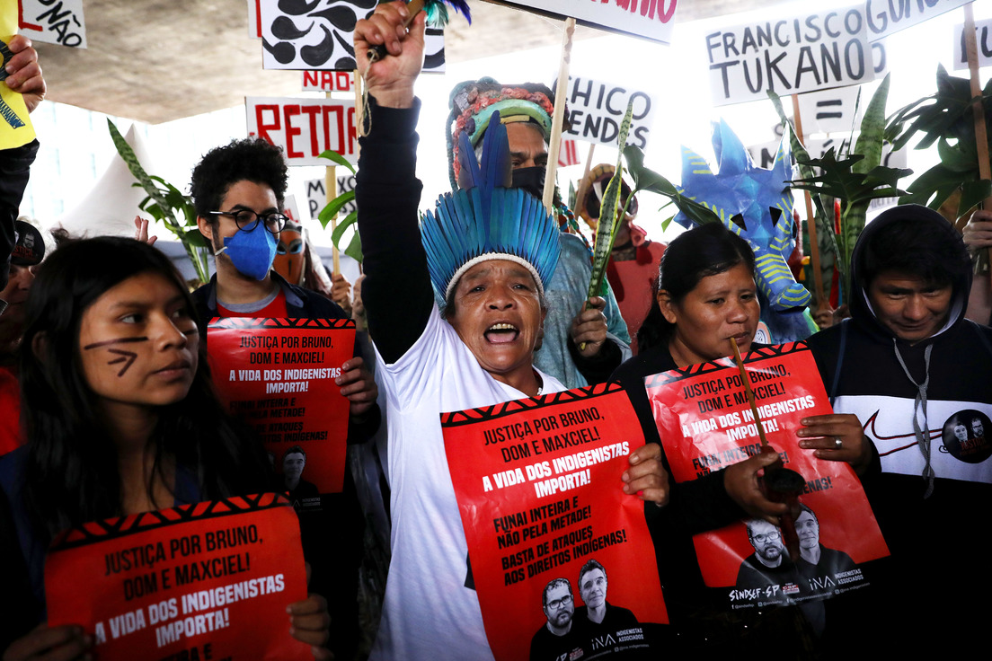 "Los asesinatos de alto perfil del periodista británico Dom Philipps y del experto indígena Bruno Pereira (...) son un claro indicio del ataque contra los indígenas y quienes intentan protegerlos", destaca la ONG.