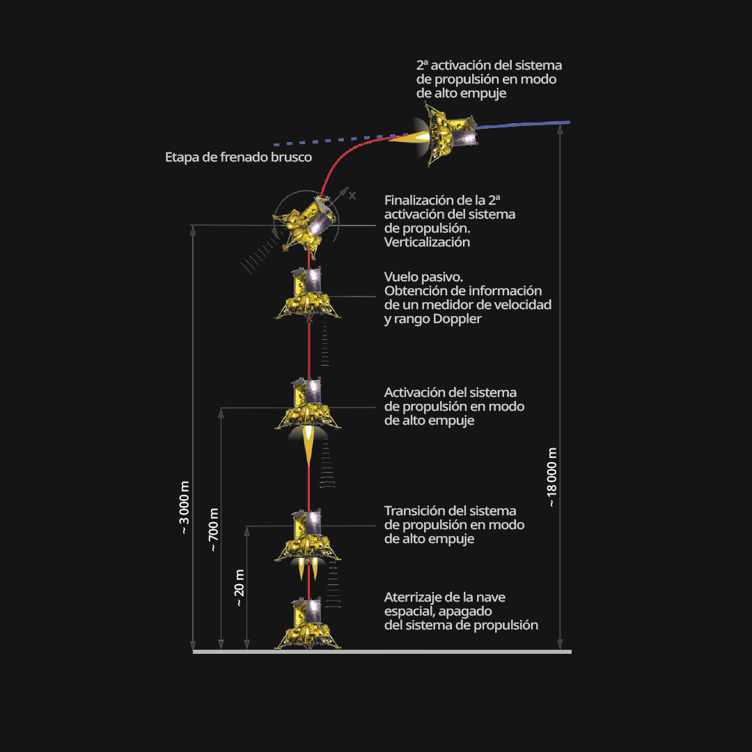 Para llegar a su destino y llevar a cabo sus tareas científicas, Luna-25 deberá completar varias etapas de vuelo. En primer lugar, el cohete Soyuz 2.1b colocará al Fregat en la órbita terrestre. Posteriormente, esta etapa superior entrará en una órbita de transferencia lunar. A una distancia de 3.000 kilómetros de la Tierra, el Fregat se separará de Luna-25 para que esta continúe con su trayectoria.