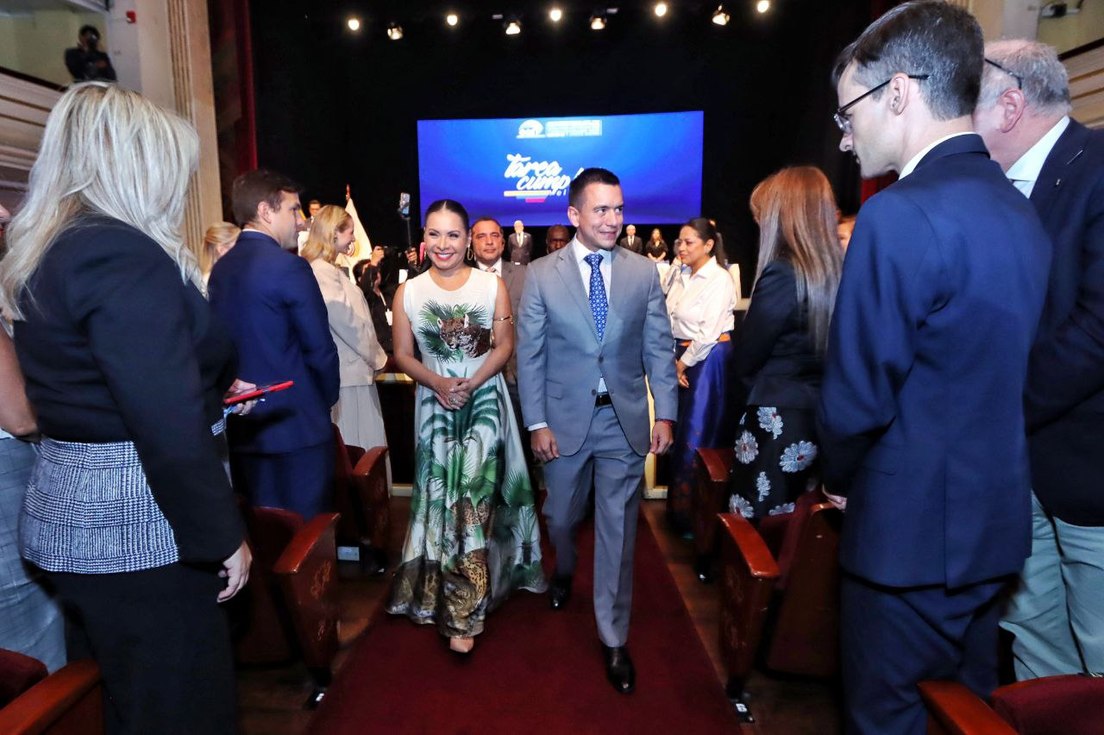 "Concluimos este proceso electoral con la entrega de credenciales al binomio presidencial, quienes tendrán en sus manos la responsabilidad de conducir a nuestro país por senderos de una democracia plena y justa", expresó Diana Atamaint, presidenta del CNE, en el acto celebrado en el Teatro Nacional Sucre de Quito.