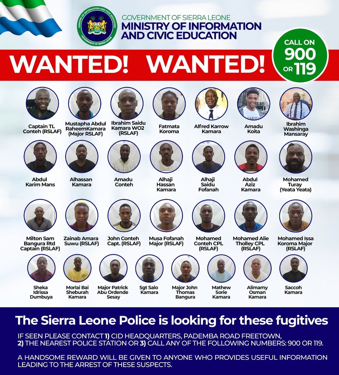 El teniente general Peter Lavahun señaló que pudieron "recuperar dos vehículos con armas y municiones". Asimismo, aseveró que aún están activas las operaciones de búsqueda y captura. Por su parte, el inspector general de la Policía, William Fayia Sellu, explicó que algunos de sus agentes que escaparon del cautiverio pudieron reconocer a los agresores. "La mayoría de ellos son exmilitares y policías", puntualizó.