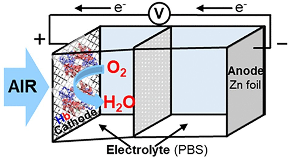 Un equipo de investigación de la Universidad de Córdoba (UCO), en colaboración con científicos de la Universidad Politécnica de Cartagena, ambas en España, ideó el primer prototipo de batería biocompatible que funciona durante unos 20 a 30 días utilizando la proteína hemoglobina como facilitador de reacciones en las baterías de zinc-aire que transforman la energía química en eléctrica.