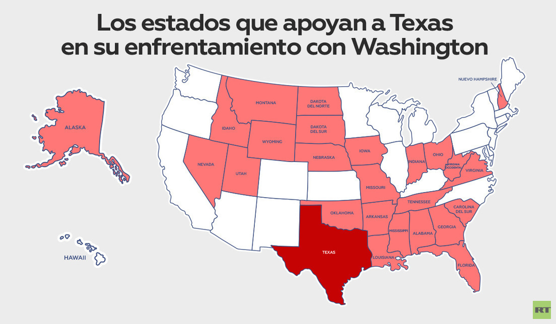 Greg Abbott, gobernador de Texas, defendió este miércoles en un comunicado el derecho de su estado a defender sus fronteras de la "invasión" que supondría la inmigración ilegal, mediante la Guardia Nacional de Texas y el personal del Departamento de Seguridad Pública del estado. La posición de Texas ha sido apoyada, de momento, por los gobernadores de 25 estados. Este viernes, también manifestó que Texas está "preparada" para un conflicto con las autoridades federales.