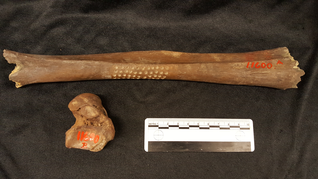 Junto a él encontraron una porra de madera, una vasija de cerámica y huesos de vaca.