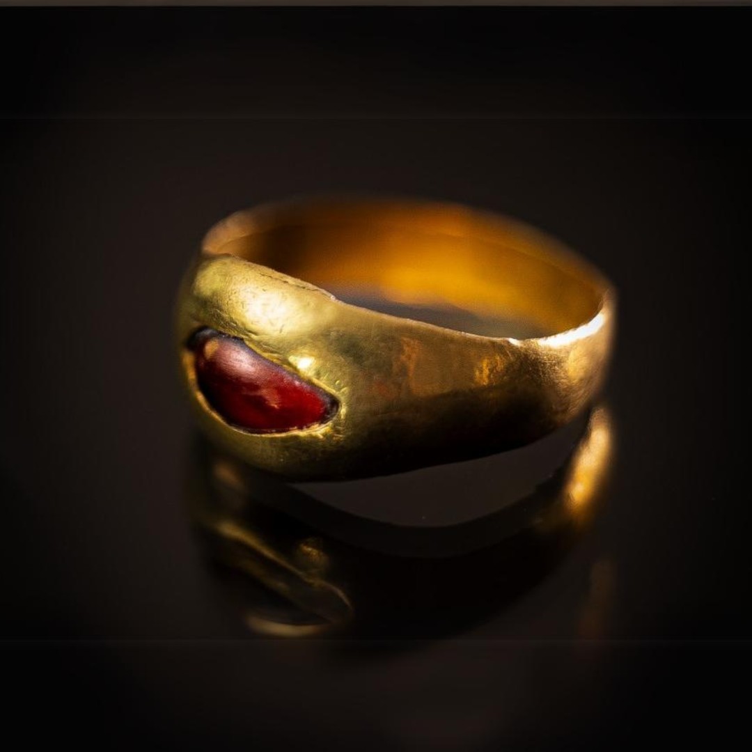 Un anillo de oro incrustado con una piedra del período helenístico temprano fue descubierto en una excavación arqueológica en la Ciudad de David, ubicada en el Parque Nacional de las Murallas de Jerusalén. El anillo está incrustado con una piedra roja, que probablemente sea un granate.