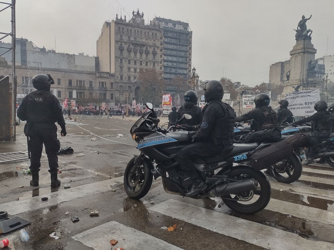 Entretanto, la Policía optó por levantar vallas en los alrededores del Legislativo, en interés de impedir el paso de personas y evitar la interrupción del debate sobre la Ley Bases.
