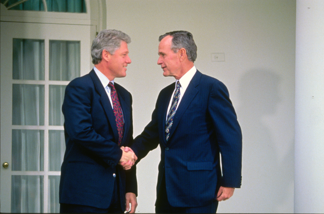 Al mismo tiempo, el 42º presidente de EE.UU., al abandonar la Casa Blanca, dejó a su sucesor con equipamiento que no funcionaba, muebles rotos, documentos importantes del despacho presidencial esparcidos por el suelo y teclados de computador a los que les faltaba la letra 'W', necesaria para escribir el nombre del nuevo presidente George W. Bush.