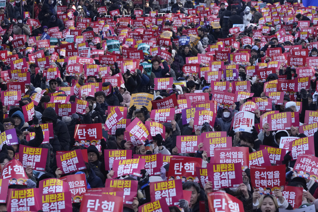 La posibilidad de que la moción de destitución no sea aprobada desató indignación entre la ciudadanía, que salió a protestar en dos importantes zonas de la capital, Seúl. Durante las protestas participaron miles de personas con pancartas con mensajes como "Destitución de Yoon Suk-yeol" y "Rechazamos a Yoon Suk-yeol". Por otra parte, partidarios del presidente también salieron a las calles bajo el lema "Detengan la destitución".