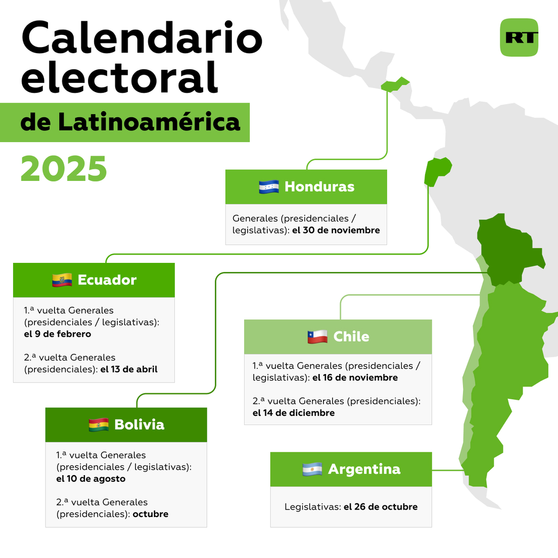 El 16 de noviembre les tocará a los chilenos votar para elegir a su nuevo presidente para el período 2026-2030, también para renovar por completo la Cámara de Diputados (155 miembros), y se elegirán 23 senadores, de los 50 con los que cuenta el Senado. En caso de ser necesario un balotaje, se realizará el 14 de diciembre.