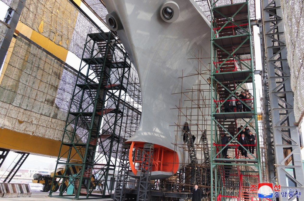 Durante el recorrido en un astillero donde se elaboran buques de guerra, Kim supo de los avances de la "construcción de un submarino estratégico de misiles guiados de propulsión nuclear". El medio también compartió varias imágenes del líder norcoreano en el astillero.