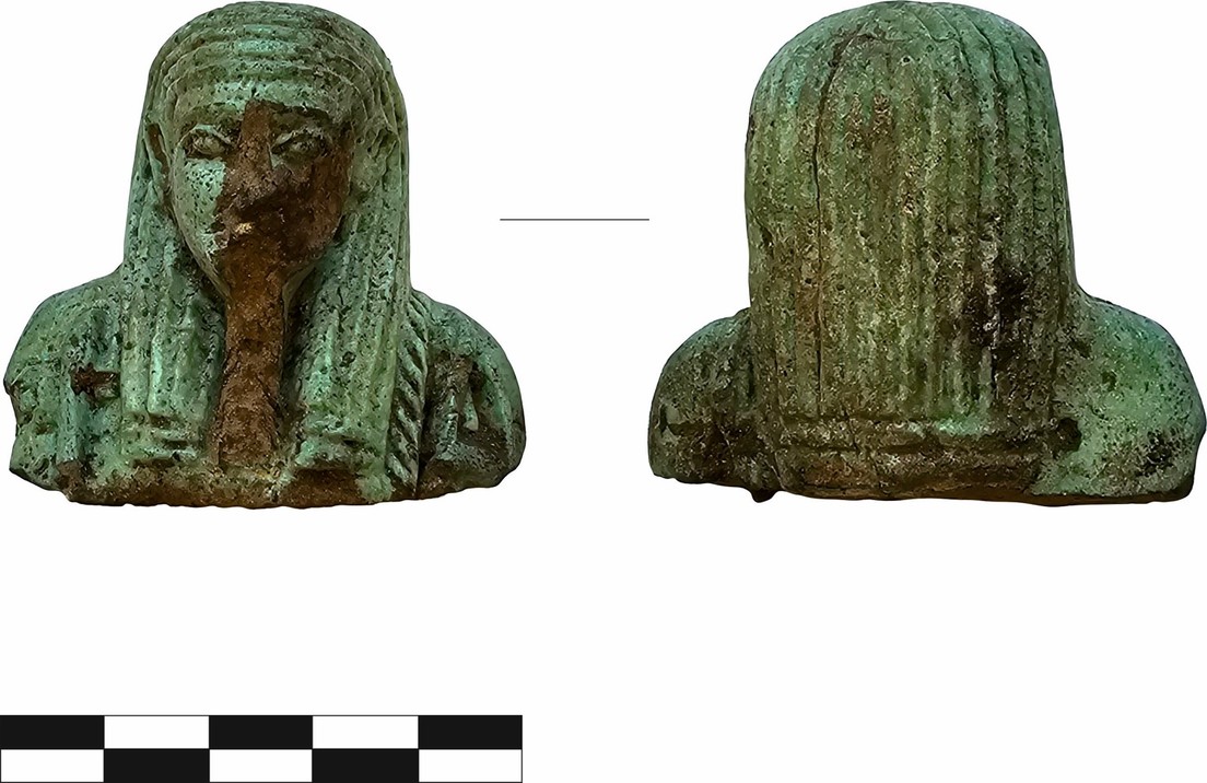 En las ruinas, los investigadores encontraron varios artefactos que reflejan una vibrante cultura espiritual. Entre los más destacados se menciona un 'ushebti' de loza verde (figurilla funeraria que se colocaba en tumbas del difunto como su sirviente en el más allá) de la dinastía XXVII (Período Tardío), así como una estela del dios Harpócrates (versión helenizada del dios Horus en su forma infantil) con símbolos protectores y un sistro (instrumento musical) de bronce adornado con las cabezas gemelas de Hathor, en este contexto diosa de la música y la alegría.