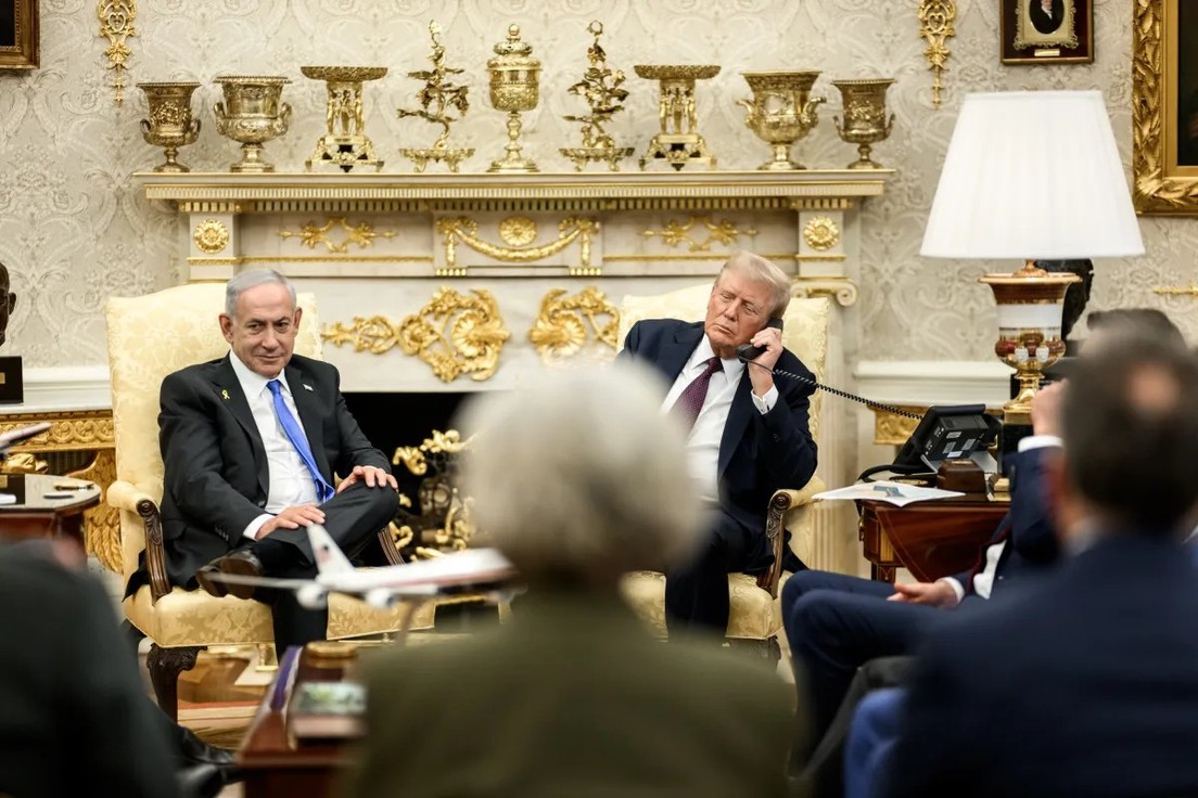 La Casa Blanca publicó este miércoles en su sitio web fotografías de la conversación entre el primer ministro de Israel, Benjamín Netanyahu, y su par catarí, Mohamed bin Abdulrahman Al Thani, luego del ataque que Tel Aviv realizó en septiembre en Doha contra un grupo de representantes del movimiento palestino Hamás.