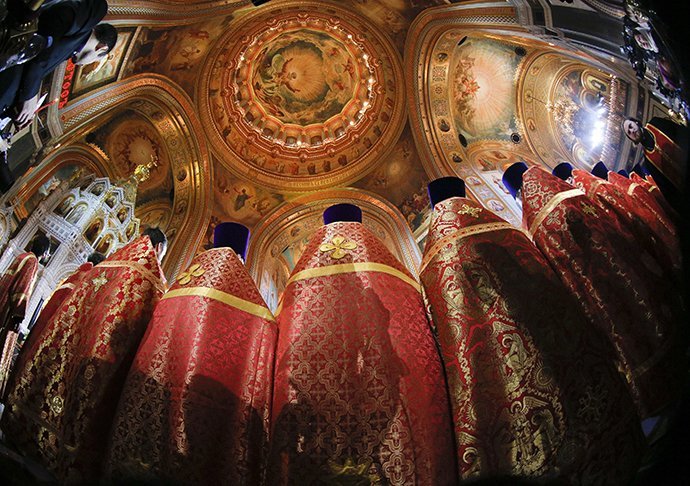 El Patriarca de Moscú y de Toda Rusia, Kiril, máximo representante de la Iglesia ortodoxa rusa, estuvo a cargo de la principal ceremonia religiosa de los ortodoxos rusos que empezó este sábado en la Catedral de Cristo Salvador de Moscú.