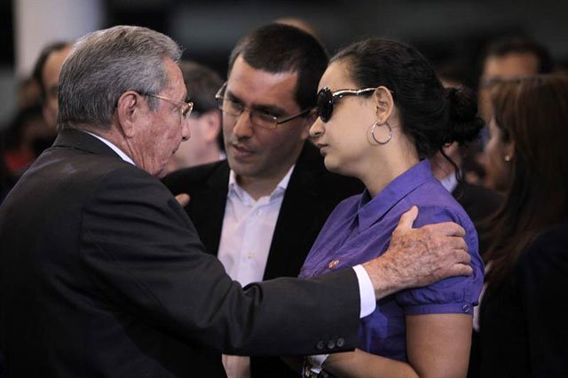EFE El general Raúl Castro, ofrece sus condolencias a la hija de Chávez.