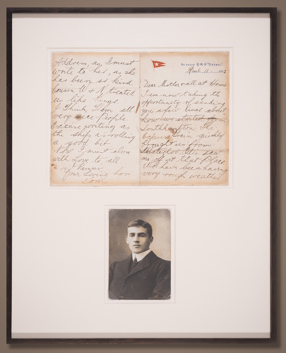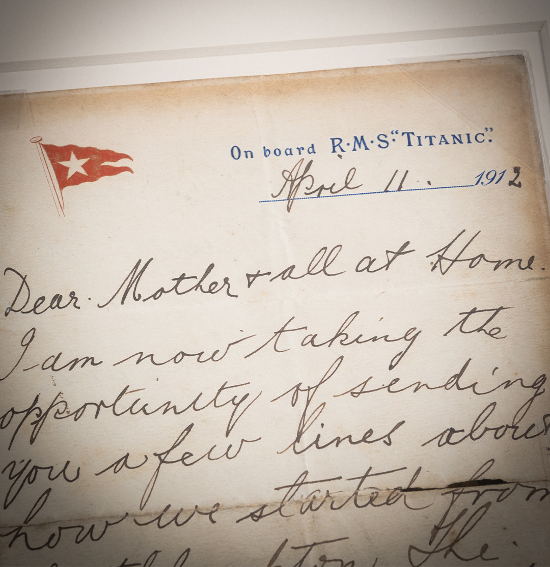 "Querida madre y todos los que están en casa: Aprovecho para escribirles unas líneas sobre cómo partimos de Southampton […] Hemos tenido un tiempo muy duro, pero el barco está tan estable que apenas se notaría su movimiento de no ser por el rugido de los motores. Ahora nos estamos acercando a Queenstown [Irlanda]", reza la carta, enviada precisamente desde ese puerto irlandés (ahora llamado Cobh) que fue la última escala del Titanic antes de partir rumbo a Nueva York.